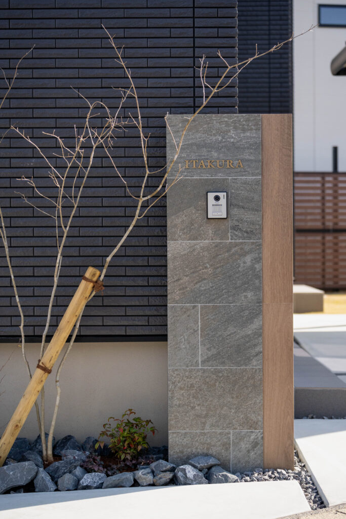 門柱と真鍮表札との相性も良く、全体を通して建物と統一感のある外構になりました。